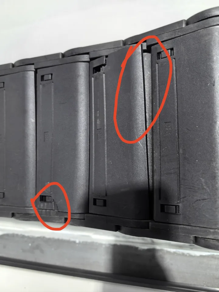 Khi sử dụng ống dẫn cáp nhựa, ống ghen nhựa cho cáp động hoặc các loại xích nhựa công nghiệp khác, các lỗi phổ biến bao gồm:
