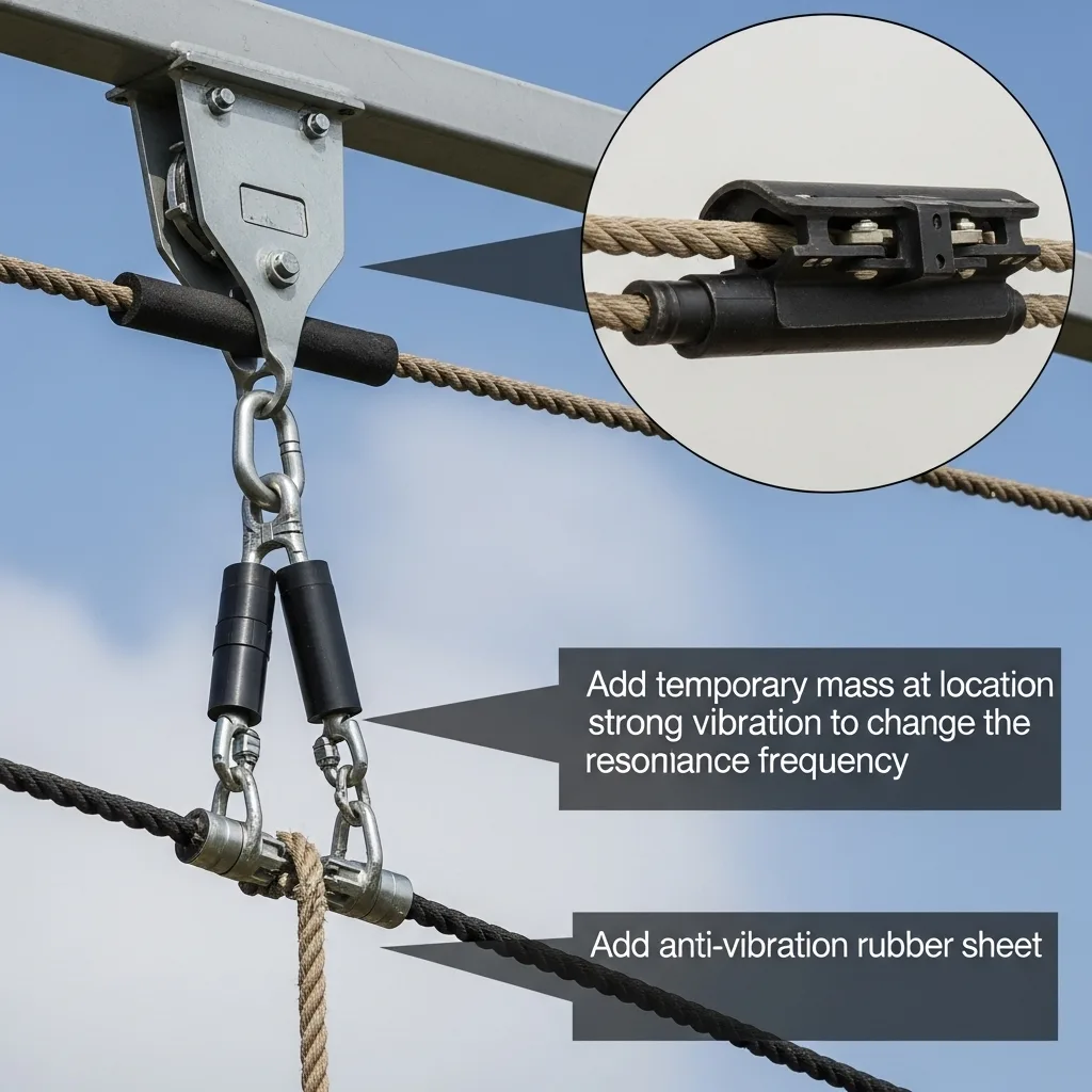 Trong hệ thống có chuyển động nhanh, rung động là nguyên nhân gây mỏi dây và đứt điểm neo. Một số giải pháp kỹ thuật phổ biến để giảm rung: