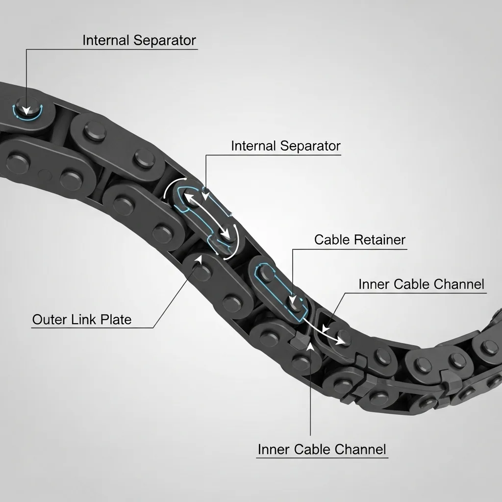Dễ dàng vệ sinh và bảo trì, xích nhựa dẫn cáp này thực sự là giải pháp tuyệt vời cho các vấn đề kết nối.