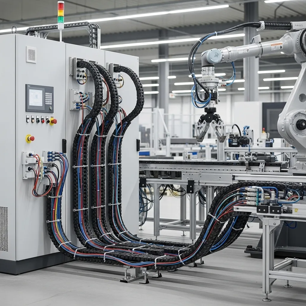 Những yêu cầu thực tế trong môi trường công nghiệp: kết hợp với phụ kiện như Igus, Tsubaki và thiết bị dẫn dây – ví dụ: xích nhựa dẫn cáp, xích nhựa đi dây