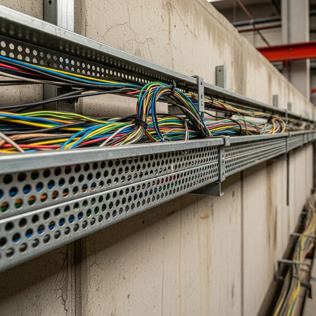 Ảnh minh họa thang cáp điện với nhiều dây không bảo vệ