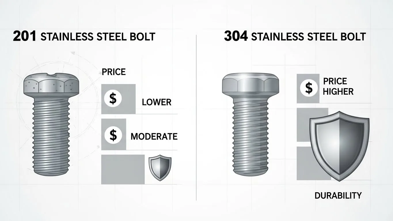 So sánh bulong inox 201 và 304 cho công trình ngoài trời