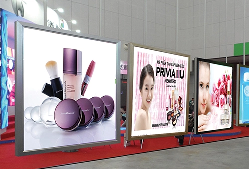 Tấm mica trong suốt dùng làm bảng hiệu và vách booth mỹ phẩm cao cấp